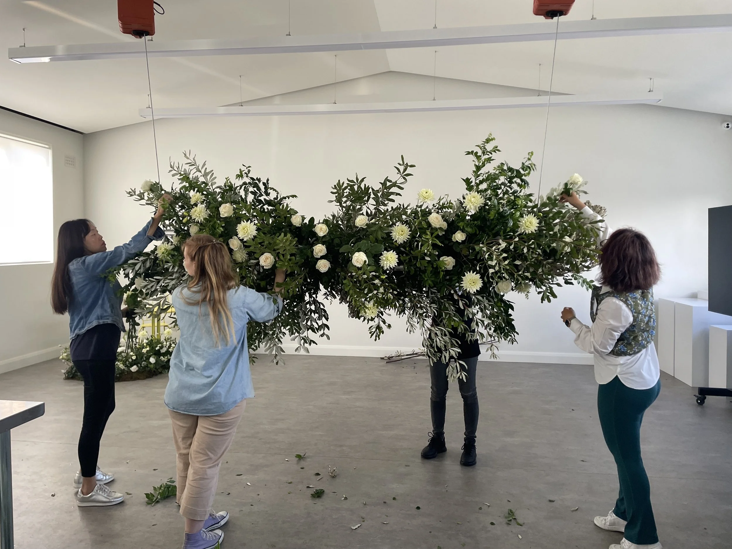 Group floristy installations constructed under the guidance of Pearsons School of Floristry